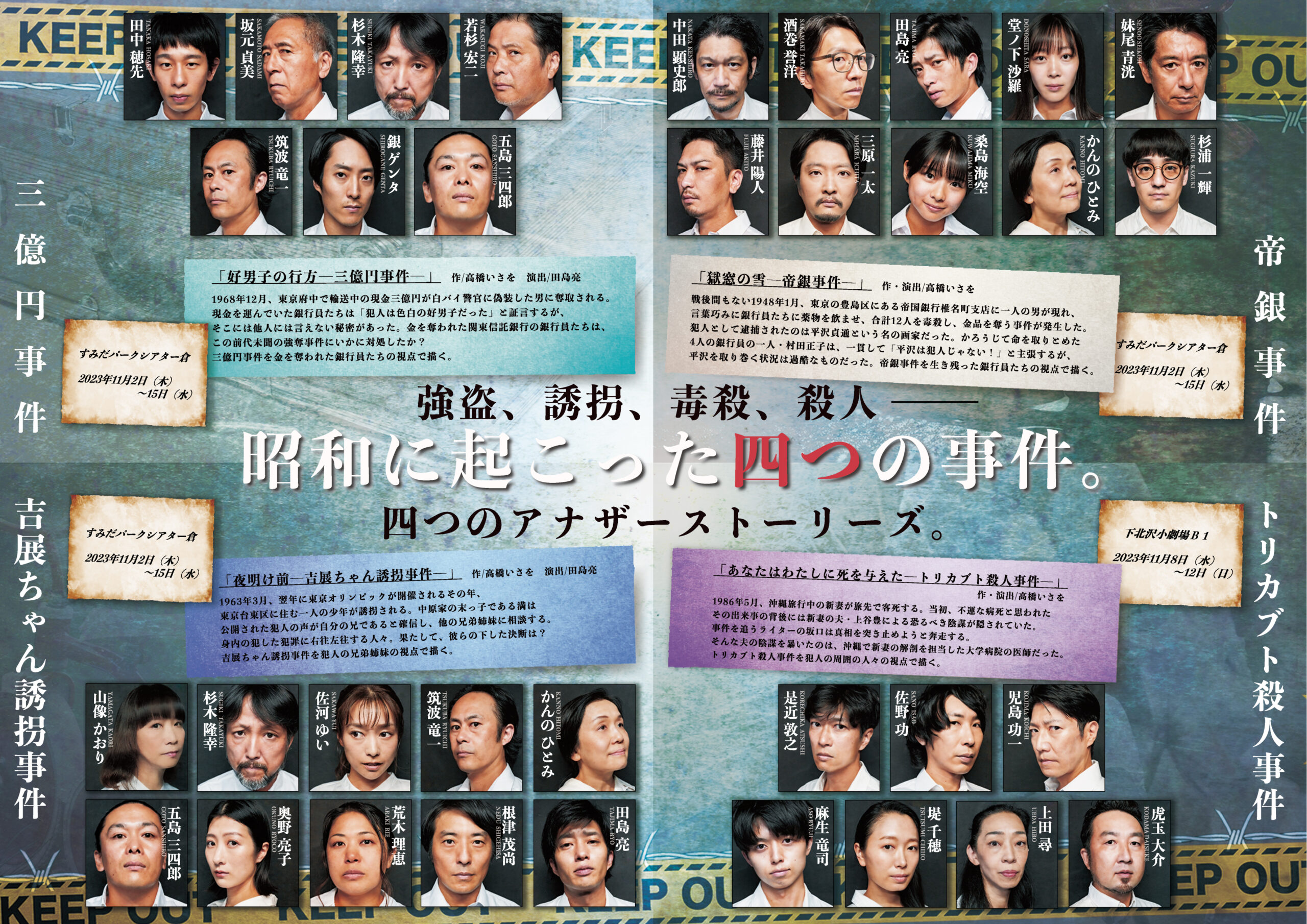 深夜、都内の公衆便所。そこは男が男を求めて集まる場所。詩人(高村 月)がそのな場に現れ、便所の壁や柱を愛撫し始める。彼は愛に破れた無名戦士たちがそこに埋められていると信じ、毎夜探し歩いている。詩人の父(高木 薫)を兄(白倉 裕二・仲井真 徹)は彼の狂気に悩まされ、見捨てるか葛藤しつつも彼を追う。諦めたい父、見捨てたくない兄。公衆便所に渦巻くそれぞれの思いと淫猥な男たち。清水邦夫の美しい言葉で描かれる混沌の世界。岸田戯曲賞受賞作品「ぼくらが非情の大河をくだる時〜新宿菩薩戦争〜」銀ゲンタの新たな演出で旋風を巻き起こす!